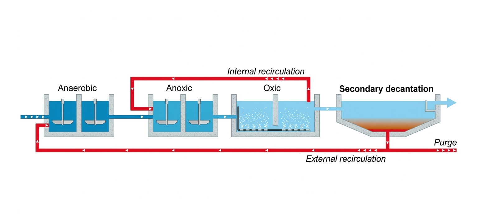 - Ngăn Kỵ khí (A): Phân hủy các hợp chất hữu cơ phức tạp và loại bỏ Photpho.